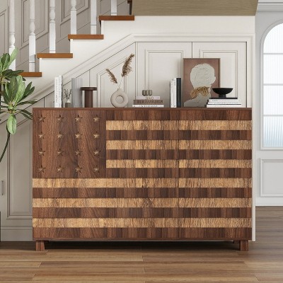 CAVINAS Mid Century Wooden Buffet Cabinet Sideboard with Hand Carved Design,Storage Cabinet for Kitchen,Dining Room,Living Room,Walnut