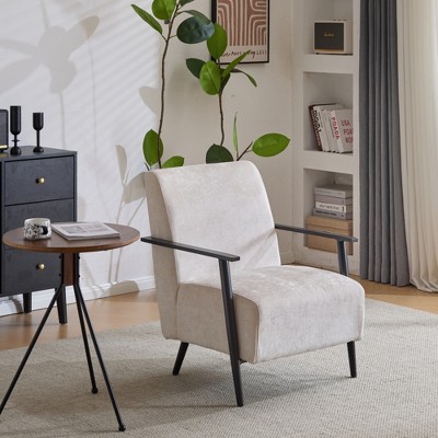 CAVINAS Modern Accent Chair, Upholstered Living Room Chair with Metal Frame, Reading Chair Arm Chair for Bedroom, Living Room, Office, Beige