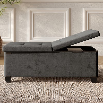 CAVINAS Modern Bench with Storage, 43" Linen Footrest Ottoman with Foldable & Thick Foam Padded Seat for Living Room, Bedroom, Entryway, Gray