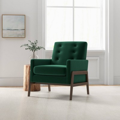 Product Name: CAVINAS Modern Ergonomics Accent Chair, Soft Velvet Material Living Room Chair with Black Legs and Backrest, Mint Green