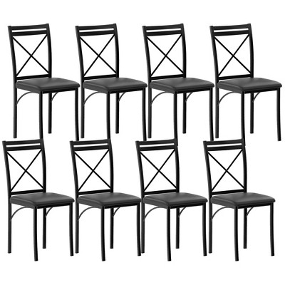 CAVINAS Modern Luxury Simple Arch Chair - Set of 8 Black PU High Resilience Dining Chair with Crazy Horse Texture and Arched Metal Silver Leg