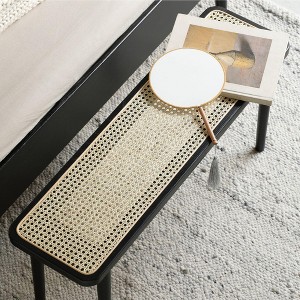 Product Name: CAVINAS Modern Natural Solid Wood Ottoman Bench With Woven Top,Simple Dining Bench for Living Room,Dining Room,Black