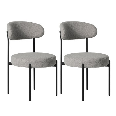 CAVINAS Modern PU Leather Dining Chairs with Foam Cushion and Black Metal Legs, 2-Piece Side Chair for Dining Room, Living Room, Light Gray