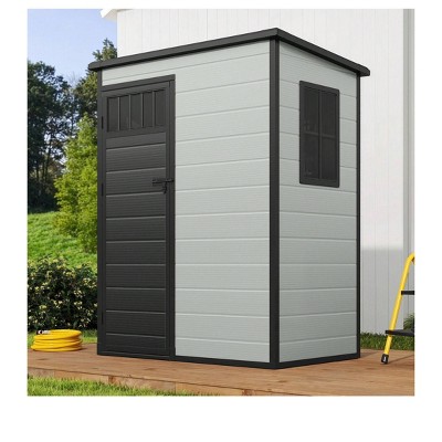 Made of durable plastic material, this storage shed provides year-round protection for your belongings, ensuring they are protected from weather changes.