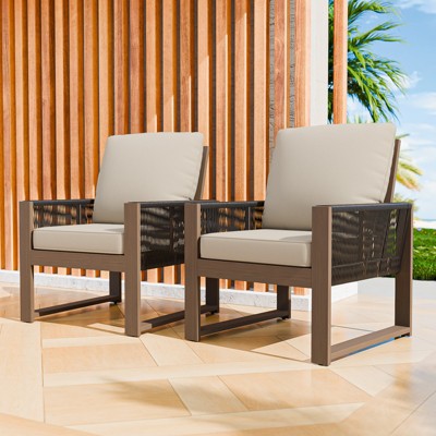 CAVINAS Outdoor Dining Chairs Set of 2, Patio Dining Chairs with Teak-Finish Acacia Wood Frame,All-Weather Armchairs for Patio,Teak+Beige
