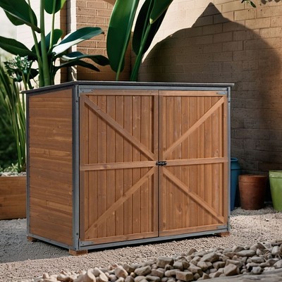 Product Name: CAVINAS Outdoor Storage Shed With Lockable Doors Galvanized Metal Garden Shed for Patio, Brown