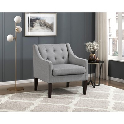 CAVINAS Polyester Accent Chair with Tufted Backrest and Wood Legs,Modern Upholstered Living Room Chairs,Reading Chairs for Living Room,Gray