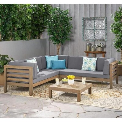 CAVINAS Porch Furniture Set with Coffee Table, Acacia Wood Patio Conversation Sets, Modern Patio Sofa Sets for Garden
