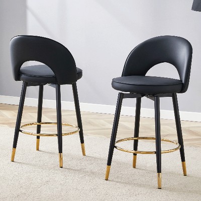 CAVINAS PU Leather Swivel Bar Stools Set of 2,Counter Stools with Adjusatble Seat Height,Kitchen Chairs for Kitchen Island,Home Pub