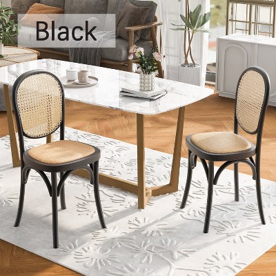 CAVINAS Retro Mid Century Dining Chairs Set of 2,Natural Rattan&Birch Wood Kitchen Chairs Set of 2,Vintage Dining Room Chairs for Dining Table,Black