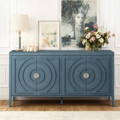 CAVINAS Retro Sideboard with Circular Groove Design,60" Kitchen Storage Cabinets with Round Metal Handles,for Kitchen,Living room & Dining Room