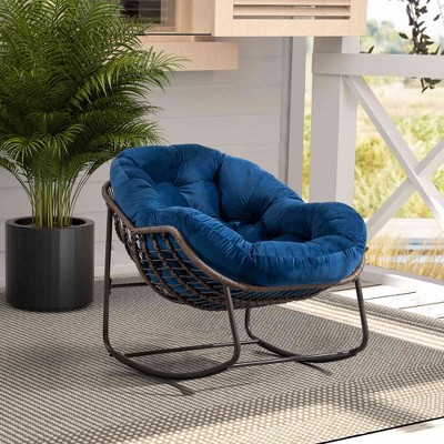 CAVINAS Rocking Chair Outdoor Rattan Glider Rocker Chair Accent Chair Reading Chair Comfy Chair, Navy Blue