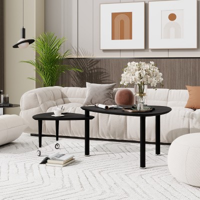This 2-piece modern nesting coffee table set features a 360-degree rotatable design (slides out for extra space, ideal for small areas) and solid rubber wood legs paired with a 0.98-inch MDF oak veneer top (or white sintered stone option).