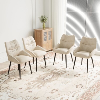 CAVINAS Set of 2 Luxury Dining Chair with Metal Legs and Comfortable Backrest,Velvet Dining Room Chairs for Kitchen,Living Room,Beige