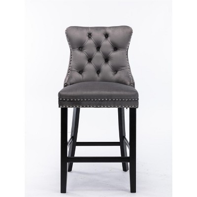CAVINAS Set of 2 Velvet Bar Stools with Button Tufted,26.3'' Counter Stools with Chrome Nailhead Trim,Bar Chairs for Home Pub & Kitchen Island,Gray