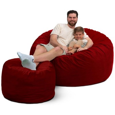CAVINAS Soft Bean Bag Chair for Adults, Square Lazy Sofa with High Resilient Foam and Footstool, for Living Room and Bedroom, Red+Brown