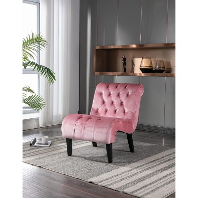 Product Name: CAVINAS Suede Upholstered Accent Chair with Backrest,Modern Upholstered Armless Chair with Pillow for Living Room,Pink