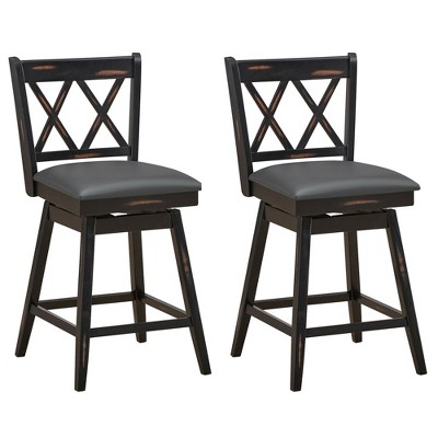 CAVINAS Swivel Bar Stools Set of 2,Breathable Counter Stools with Cotton Linen Cushions,Barstools with Metal Frame for Kitchen,Antique Green+Black