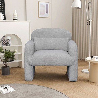 CAVINAS Teddy Fabric Accent Chair with Pillow and Armrests, Cozy Single Sofa Chair for Living Room, Bedroom, Study, Gray