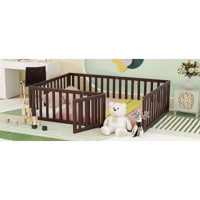 Product Name: CAVINAS Twin Size Bed Frame with Heightened Fences,Solid Wood Floor Bed for Kids Room,Bedroom,Playroom,Gray