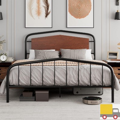 CAVINAS Twin Size House Shaped Bed Modern Wooden Bed Frame with Headboard and Footboard for Bedroom, Espresso