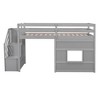 CAVINAS Twin Size Loft Bed Wood Bed Frame with Storage Stairs, Guardrail and Window for Bedroom