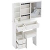 CAVINAS Vanity Desk with Mirror Compact Makeup Table with Multi-Layer Storage & Stool for Apartment, Bedroom