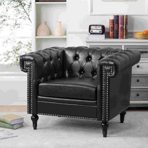 CAVINAS Velvet Accent Chair with Mid-Height Backrest and Gourd Shaped Wood Leg,Upholstered Living Room Chairs,Reading Chairs for Living Room,Black