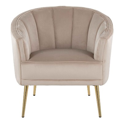 CAVINAS Velvet Accent Chair with Pleated Waves Backrest and Metal Leg,Cozy Upholstered Living Room Chairs,Reading Chairs for Living Room,Champagne