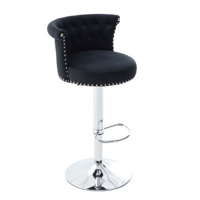 CAVINAS Velvet Bar Stools Set of 2, Adjustable Swivel Counter Stools, Comfy Bar Chairs with Silver Plated Metal Leg for Kitchen Island, Black