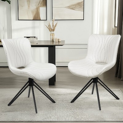CAVINAS White Dining Chairs, Faux Leather High Back Upholstered Side Chair with C-shaped Tube Plating Golden Metal Legs, Guest Office Chair(Set of 2)
