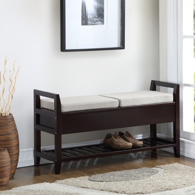 CAVINAS Wooden Shoe Cabinet,Modern Storage Bench with 3 Drawers and Flip-up Padded Top for Entryway, Living Room, Espresso