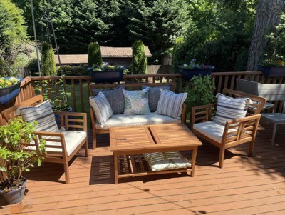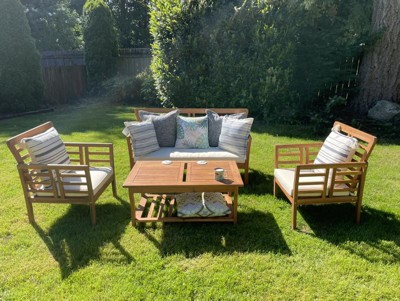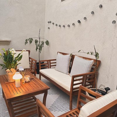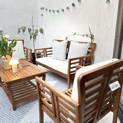 Caydon 4pc Acacia Wood Patio Chat Set with Cushions - Brown Patina - Christopher Knight Home: Outdoor Seating Ensemble