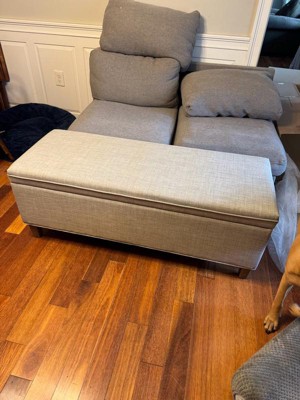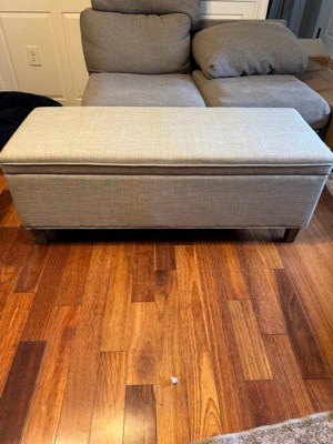 [This review was collected as part of a promotion.] This light grey storage bench is a great addition to any room. It has ample space inside for storing blankets, pillows, etc. The color is nice with fabric that holds up well. The cushion is soft enough, but also sturdy. The installation was way easier than I thought. I was able to put the legs on by myself with no tools - they just twist on! The legs are a pretty grey color tying it all together. I would buy more from this set definitely. Highly recommended to anyone looking for a storage bench for the bedroom.
