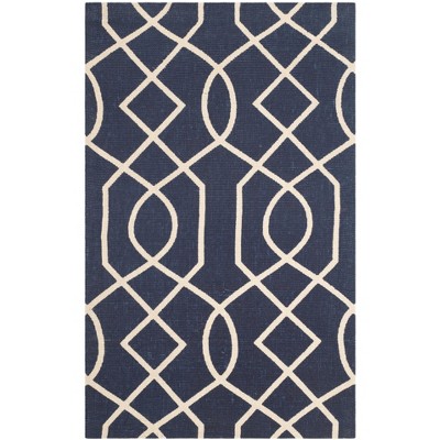 The rug features an eye-catching pattern, showcasing a harmonious interplay of Ivory and Navy colors that promises to elevate your interior decor. The intricate geometric design interlocks throughout the rug, creating a sense of rhythm and flow that draws the eye and adds sophistication to your space.
