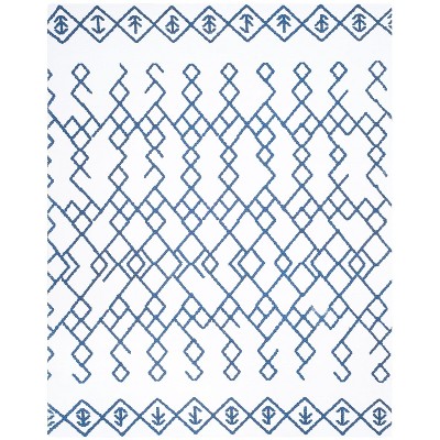 The design palette is a sophisticated blend of cool blues and crisp ivory, creating a serene and inviting atmosphere. Its moderate 1/4" height makes it a sleek and versatile addition to your interior design, perfect for sliding under furniture without the hassle of bulk.