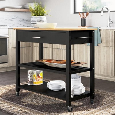 Celebalcony Outdoor Grill Cart Table with Stainless Steel Top for Kitchen Prep and BBQ, Outdoor Kitchen Island Table with Side Handle, Black
