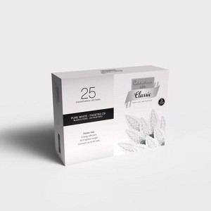 Brings a timeless and elegant glow to your holiday decor. This 16-foot strand (17 ft overall) features 25 faceted C9-shaped LED bulbs in a crisp pure white color mounted on a green wire, allowing them to blend subtly into trees, bushes, or rooflines. These LEDs are energy-efficient and stay cool to the touch, making them safer and more power-saving than traditional incandescent lights.