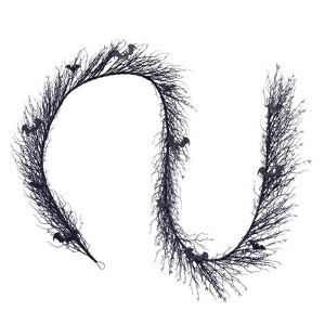 The 9-foot black Halloween twig garland, this piece features black bats and 50 LED microlights that color-change from warm white to purple, creating a mesmerizing effect. Powered by 3 AA batteries and offering 9 lighting functions, it’s a standout addition to your indoor holiday decor. Its unique design and vibrant lights bring a captivating, festive ambiance perfect for entertaining guests during the Halloween season.