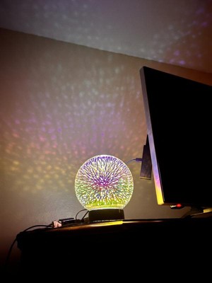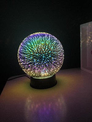 Bring a subtle burst of light into your room with this Celestial Globe Lamp. The multi-color glass with black base creates a beautiful 3D burst effect for any space. Place onto any desk, nightstand or bookcase. This lamp is USB powered to bring the wonders of the cosmos right to your room.