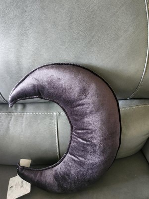 This is a really nice pillow. I Love the moon shape. Holds up nicely and doesn’t loose its shape. it has really nice glitter designs as well! Its black and silver, so it really goes with any color decor!