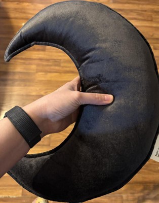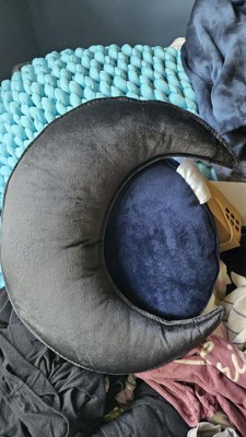 Such a cute pillow. I like the moon shape, and the design is really cute with the stars and stuff. It can actually be used as a travel pillow by putting it behind your neck, kind of. The material is really soft. I really recommend this pillow