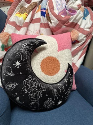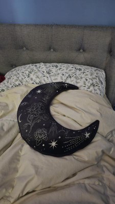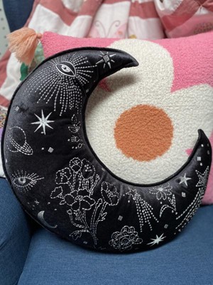 Celestial Garden Embroidered Moon Shape Decorative Pillow