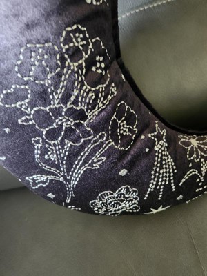 It's velvety. It's soft. It's cute. So far I think this might be my favorite throw pillow I've ever gotten. The silver embroidery is really well done. The seams are pretty fantastic. The only problem is is that it is spot clean and you can't throw it in the washing machine. Other than that, it's so adorable and lovely.