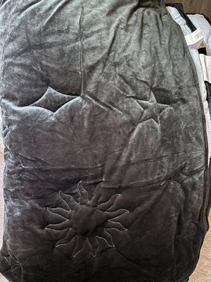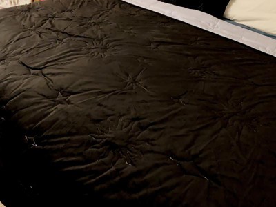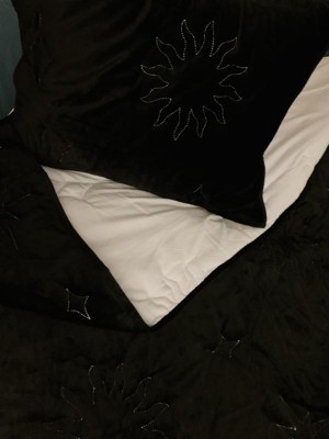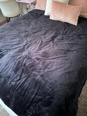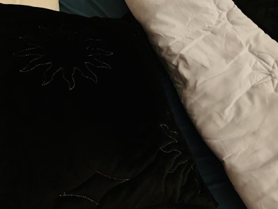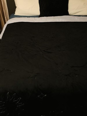 This comforter set is was exactly my daughters style. The black was the perfect color and the velvet was the perfect texture. It is soft and comfortable. The celestial design was subtle but beautiful.
