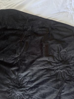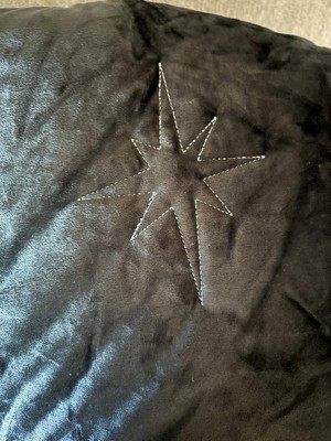 This blanket is absolutely dreamy! The black velvet side features beautiful silver celestial embroidery, while the flip side offers periwinkle blue fabric that's equally soft. It fits my queen bed perfectly and has become my go-to cover. I've been using it as a sheet, and while it might be too warm for peak summer, it's perfect for fall through spring. Quickly became a household favorite that I reach for constantly.