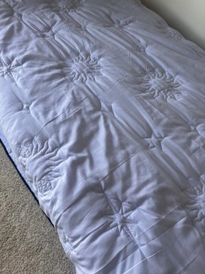 My daughter loves this comforter! It’s so soft and cute. I paired it with pink and white pillows to make it more girly and it’s so cute. The celestial patterns are stitched in silver making them a subtle but cute touch to the blanket. The other side is a nice powder blue that would also look nice if you wanted a brighter touch. Completely recommend!