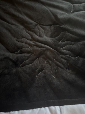 The blanket itself is soft and velvety. I like the suns stitching. I wish it had more colors and design to it. Gold would have made it pop and few more designs. It feels like it’s missing something. It’s a child comforter. It needs more color. I like that black but you really have to look to see the designs that are stitched in.