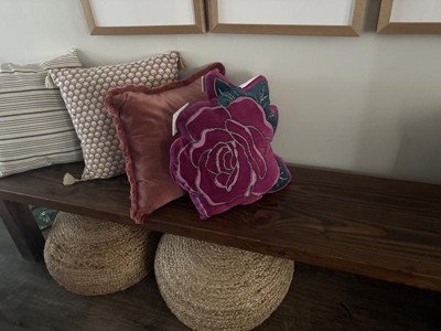 This velvet rose pillow is such a cute addition to anywhere you need an accent pillow. I wanted a summer accent to our reading nook in our three-seasons room and the whole family loves it. It is a pop of color while still being soft and functional.