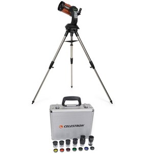 Celestron’s signature orange-tube telescope combines advanced features and excellent optics in one easy-to-use system, the Celestron Nexstar 5SE Schmidt-Cassegrain Telescope. The NexStar SE is compatible with high-tech accessories such as providing GPS coordinates to your telescope with SkySync, or add automatic alignment functionality with StarSense AutoAlign. From your first observing session and for years to come, the NexStar 5SE is your trusted companion. The Celestron Telescope Eypiece/Filter Accessory Kit gives you every addition you need to view the most amazing sky objects in vivid clarity. The Celestron Nexstar 5SE Schmidt-Cassegrain Telescope and Eyepiece Accessory Bundle gives you everything you need to conquer the night sky.View the UniverseWith a full 5 inches of aperture, the 5SE reveals details in even the faintest celestial objects. The 5SE Telescope provides a focal length of 1250mm and a focal ratio of f/10 to give you incredibly long reach. With this much light-gathering ability, you’ll clearly observe Cassini’s Division in Saturn’s rings, the cloud bands on Jupiter, and the Great Red Spot. Beyond the solar system, your 5SE will show you hundreds of pinpoint stars in the Hercules Globular Cluster, the spiral arms of the Whirlpool Galaxy, and more.NexStar Computer SystemThis is a computerized telescope equipped with the on-board NexStar computer system. That system includes a library preloaded with 40,000 objects. A corresponding GPS system that quickly and accurately finds any of those objects after just a few button presses. The computer system is preprogrammed with SkyTours so that you don't have to manually readjust the telescope for every celestial object you look at. View your celestial objects with NexStar+ hand control.Motorized Tripod MountThe aluminum tripod mount of the 5SE Telescope offers automated movement, working with the scope to align with any object in the onboard computer system. The tripod has a camera control feature so that you can remotely take a series of timed exposures with your DSLR camera. The tripod also features a built-in wedge for help with short-exposure astrophotography.High Quality ConstructionThe 5SE is made with a sturdy build and high quality components for pointing and tracking accuracy. This telescope combines an orange tube and advanced optics. Celestron's patented single fork arm mount is portable and makes for faster setup. The NexStar 5SE breaks down into lightweight and compact pieces for easy transport..